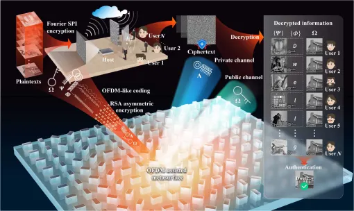 Single-pixel imaging (SPI) enables an invisible target to be imaged onto a photosensitive surface without a lens, emerging as a promising way for indirect optical encryption. However, due to its linear and broadcast imaging principles, SPI encryption has been confined to a single-user framework for the long term. We propose a multi-image SPI encryption method and combine it with orthogonal frequency division multiplexing-assisted key management, to achieve a multiuser SPI encryption and authentication framework. Multiple images are first encrypted as a composite intensity sequence containing the plaintexts and authentication information, simultaneously generating different sets of keys for users. Then, the SPI keys for encryption and authentication are asymmetrically isolated into independent frequency carriers and encapsulated into a Malus metasurface, so as to establish an individually private and content-independent channel for each user. Users can receive different plaintexts privately and verify the authenticity, eliminating the broadcast transparency of SPI encryption. The improved linear security is also verified by simulating attacks. By the combination of direct key management and indirect image encryption, our work achieves the encryption and authentication functionality under a multiuser computational imaging framework, facilitating its application in optical communication, imaging, and security.