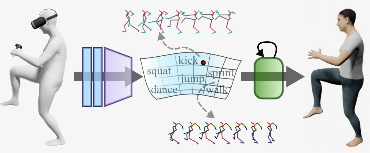 The most popular type of devices used to track a user's posture in a virtual reality experience consists of a head-mounted display and two controllers held in both hands. However, due to the limited number of tracking sensors (three in total), faithfully recovering the user in full-body is challenging, limiting the potential for interactions among simulated user avatars within the virtual world.